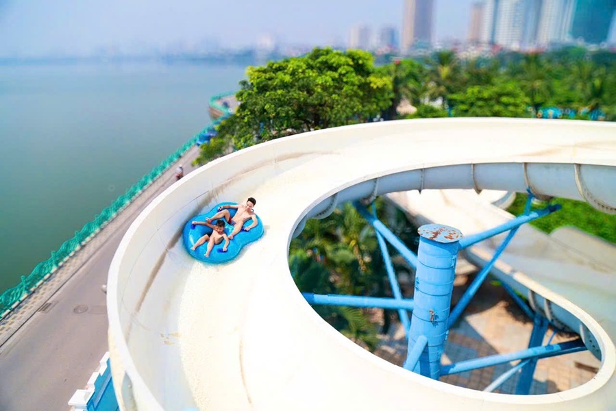Đặc biệt, năm nay Công viên đã nâng cấp toàn bộ hệ thống bể bơi và sông Lười uốn lượn quanh khu vui chơi. Cảm giác thả mình trên phao, thảnh thơi ngắm bầu trời xanh thẳm và những tán cây rì rào trong gió, sẽ giúp du khách xua tan mọi bộn bề, tận hưởng sự thư giãn tuyệt đối bên Hồ Tây lộng gió.