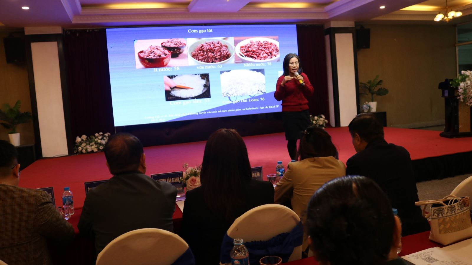 Một điểm nhấn quan trọng của hội thảo là phần hướng dẫn cho chị em phụ nữ trong việc chủ động dinh dưỡng hằng ngày nhằm duy trì lối sống lành mạnh, đồng thời lan tỏa thói quen tốt đến gia đình và xã hội của TS.BS. Nghiêm Nguyệt Thu, Trưởng khoa Dinh dưỡng Lâm sàng, Viện Dinh dưỡng- Bệnh viện Bạch Mai. Với nội dung thiết thực “Dinh dưỡng chủ động trong đời sống hàng ngày”, TS.BS. Nghiêm Nguyệt Thu đã cung cấp các kiến thức về chăm sóc sức khỏe như: dinh dưỡng hợp lý, duy trì hoạt động thể lực hằng ngày, cũng như cách phòng ngừa thừa cân, béo phì; dinh dưỡng chủ động không chỉ để phòng bệnh mà còn để sống khỏe, sống vui và nâng cao chất lượng cuộc sống. Những lời khuyên cụ thể đã được chia sẻ như: ăn đa dạng thực phẩm, giảm muối – đường – chất béo bão hòa, tăng rau xanh và trái cây, duy trì vận động thể lực hằng ngày để phụ nữ có thể áp dụng ngay tại gia đình của mình.