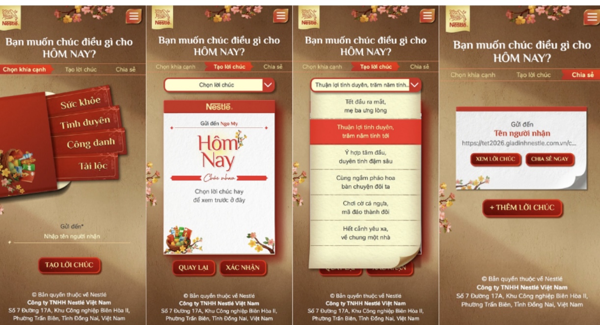 Theo đó, từ ngày 07/01/2026, người tiêu dùng có thể tương tác và gửi lời chúc ý nghĩa đến người thân và bạn bè bằng “Lịch Tết Hôm Nay” tại đường dẫn: https://tet2026.giadinhnestle.com.vn/.