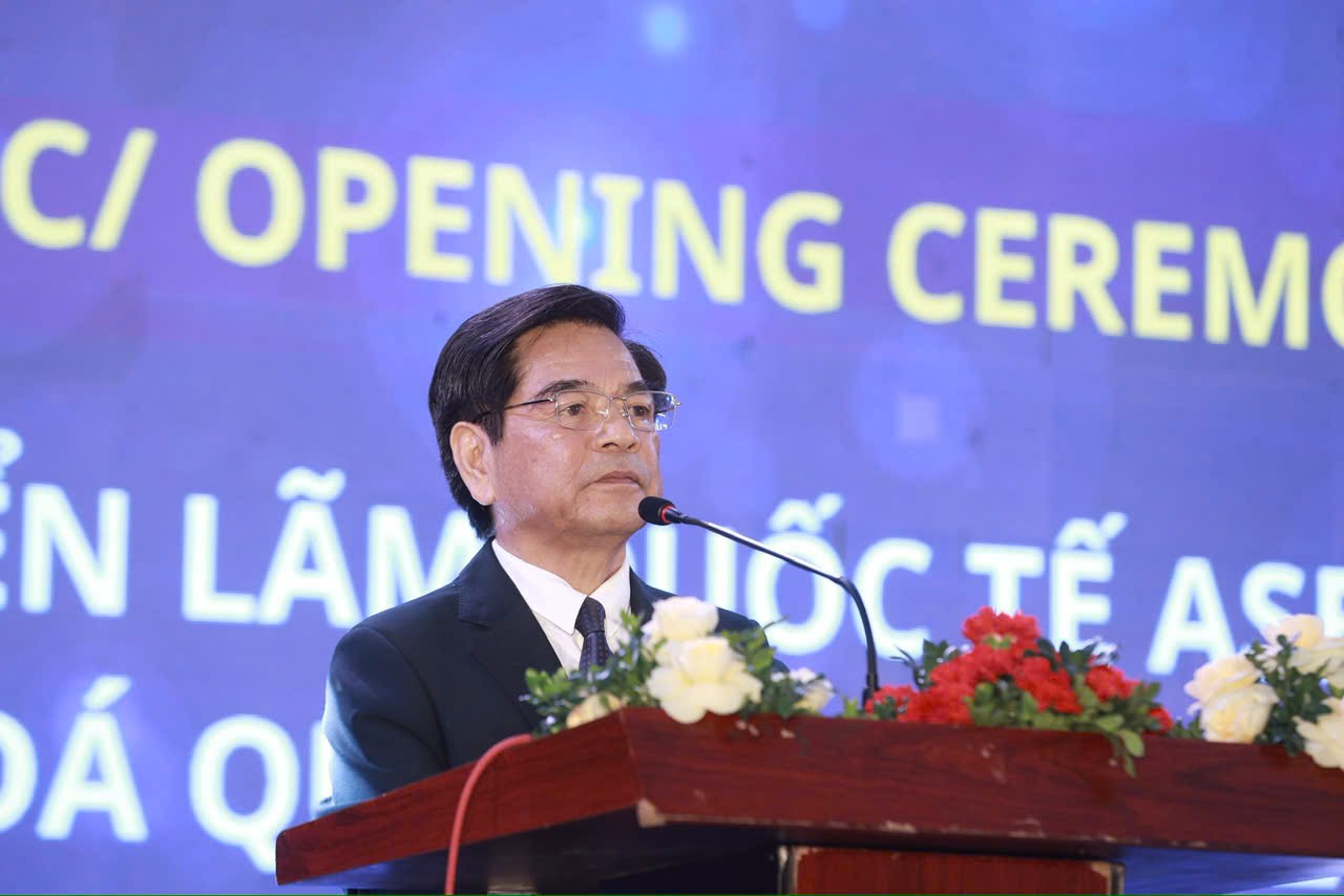 TS. Lê Ngọc Dũng - Ủy viên Ủy ban Trung ương MTTQ Việt Nam, Chủ tịch Hội Mỹ nghệ Kim hoàn và Đá quý Việt Nam, Chủ tịch Hội Nghệ nhân và Thương hiệu Việt Nam, Viện trưởng Viện Nghiên cứu và Phát triển Đạo Mẫu Việt Nam phát biểu tại lễ khai mạc.