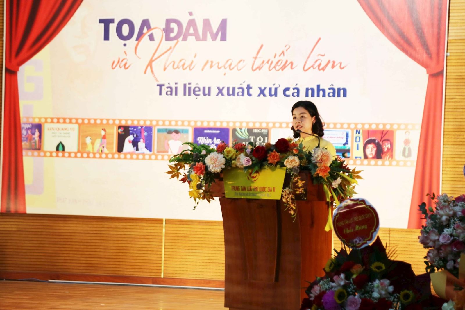 Phát biểu tại khai mạc tọa đàm và triển lãm, bà Nguyễn Thị Nga, Phó Cục trưởng Cục Văn thư và Lưu trữ nhà nước nhấn mạnh: Tài liệu lưu trữ là những bằng chứng sống động và xác thực về lịch sử, là những dấu mốc phản ánh quá trình phát triển của đất nước, của dân tộc và của từng con người. Bên cạnh hệ thống tài liệu hành chính hình thành trong hoạt động của các cơ quan, tổ chức, thì tài liệu xuất xứ cá nhân ngày càng được khẳng định là nguồn sử liệu có giá trị đặc biệt – vừa mang tính riêng tư, vừa gắn bó mật thiết với tiến trình lịch sử và đời sống xã hội. Tọa đàm và Triển lãm hôm nay là minh chứng sinh động cho hướng đi đúng đắn đó.