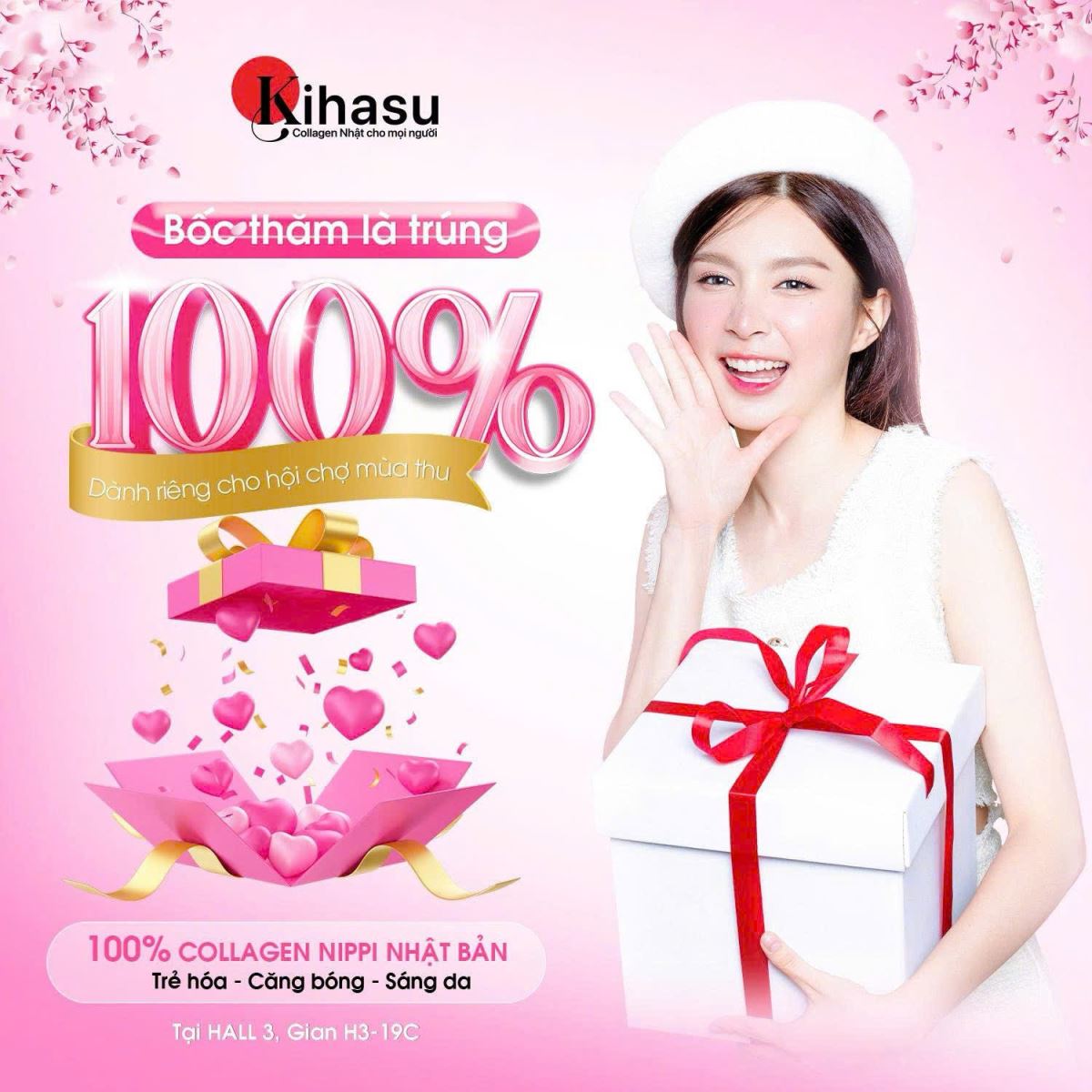Tham gia hội chợ lần này, Kihasu mang đến chương trình ưu đãi giảm giá từ 10% đến 50% cho toàn bộ các sản phẩm mỹ phẩm collagen. Đây là dịp hiếm có để khách hàng được trực tiếp trải nghiệm các sản phẩm Kihasu chính hãng, được đội ngũ chuyên viên tư vấn về lộ trình chăm sóc da, chống lão hóa và phục hồi sau 25 tuổi.