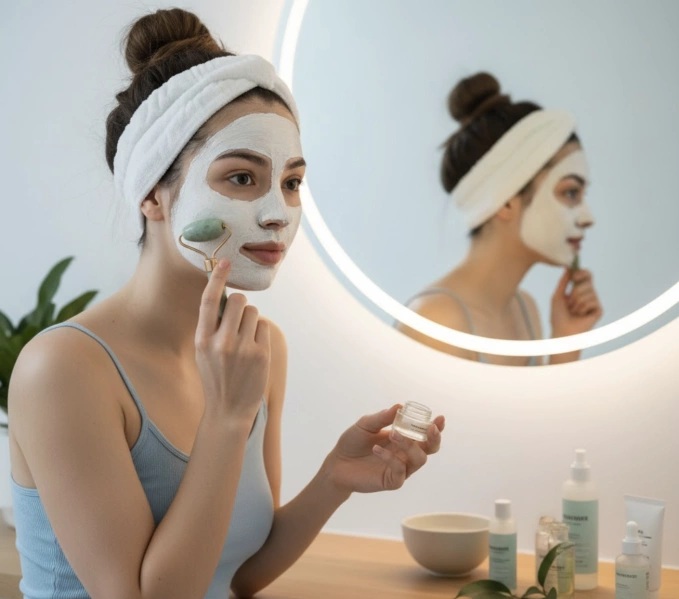 Nên sử dụng các sản phẩm dưỡng da có thành phần dưỡng ẩm cao cho mùa thu. Ảnh tạo bởi AI