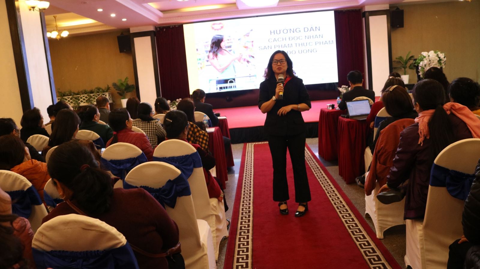 Tại Hội thảo, Ths. Nguyễn Thanh Hồng- chuyên gia đến từ T5G, đã cung cấp hướng dẫn thực tế về cách đọc nhãn thực phẩm và đồ uống. Thành phần sản phẩm, nguồn gốc từ đâu, có sử dụng nhiều hay ít phụ gia… là những thông tin quan trọng để hiểu những yếu tố có thể gây rủi ro cho sức khỏe (chứa các chất gây dị ứng với bản thân, chứa thành phần biến đổi gen hay đã qua chiếu xạ v.v). Trên nhãn sản phẩm thực phẩm, đồ uống phải bắt buộc ghi nhãn dinh dưỡng. Bà Hồng đã hưỡng dẫn chi tiết cách đọc các thông tin dinh dưỡng có trên nhãn sản phẩm như giá trị năng lượng (có trong một khẩu phần ăn), năng lượng đó đến từ đâu?, có chứa nhiều muối không? có chứa chất béo tốt hay xấu, cung cấp bao nhiêu vitamin khoáng chất so với nhu cầu dinh dưỡng hàng ngày được khuyến nghị cho thể trạng người Việt Nam. Bà cũng lưu ý về hàm lượng đường có mặt trong sản phẩm nước giải khát và độ cồn trong các sản phẩm rượu bia. Để tránh lạm dụng “Đơn vị cồn”, tương đương 10 gam cồn (Ethanol) nguyên chất chứa trong sản phẩm rượu, bia là đơn vị đo lường để quy đổi rượu bia và đồ uống có cồn khác về lượng cồn nguyên chất được chia sẻ với ví dụ dễ hiểu tương đương với 3/4 chai/lon bia 330ml (độ cồn 5%); một cốc bia hơi 330ml (độ cồn 4%), một ly nhỏ rượu vang 100ml (đồ cồn 13,5%), một cốc nhỏ rượu mạnh 40ml (độ cồn 30%). Theo Bà Hồng, để thay đổi được hành vi lạm dụng rượu bia, cần phải nâng cao công tác giáo dục nhận thức của người tiêu dùng. Trường hợp có uống thì không nên lạm dụng rượu bia, nên uống giảm xuống không quá hai đơn vị cồn/ngày đối với nam giới và một đơn vị cồn/ngày đối với nữ giới và không uống quá 5 ngày/tuần cần phải bỏ hoặc giảm uống rượu bia để phòng ngừa, giảm thiểu các nguy cơ cới sức khỏe cho bản thân. Trường hợp có uống thì tránh không nên lạm dụng rượu, bia, uống giảm xuống không quá hai đơn vị cồn/ngày đối với nam giới và một đơn vị cồn/ngày đối với nữ giới và không uống quá 5 ngày/tuần. Tuyệt đối không uống rượu bia khi điều khiển phương tiện giao thông, phụ nữ có thai, người có bệnh nền, không uống tại một số địa điểm nhất định theo quy định pháp luật.